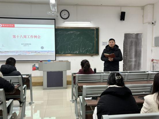 2024年1月3日,太阳成tyc7111cc在一教219召开第十八周教学工作例会。会议由吴玲经理主持,经济管理公司全体教师参加。