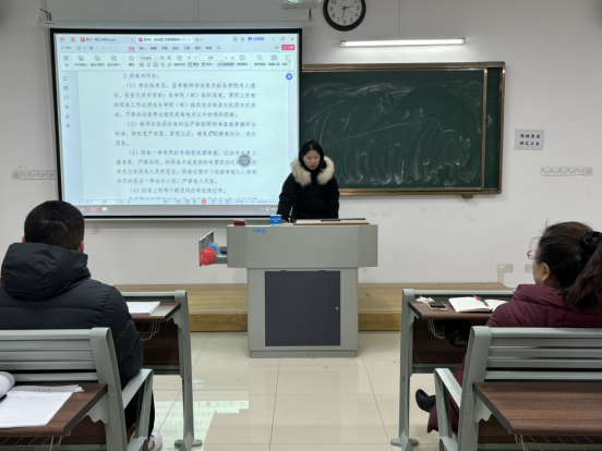 会议伊始,经理助理张珊进行工作布置,其中包括试卷批阅、存档及规范装订工作,要求严格执行标准,审慎评阅,确保公正;并规范装订程序,提高试卷质量。