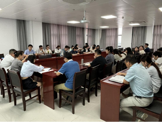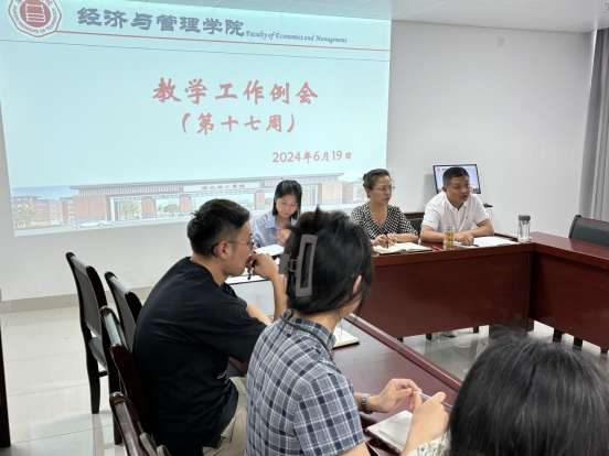 2024年6月19日下午,太阳成tyc7111cc在行政楼725会议室召开太阳成tyc7111cc第十七周工作例会,经理吴玲主持会议,副经理秦品德、经理助理张珊以及全体教师参会。