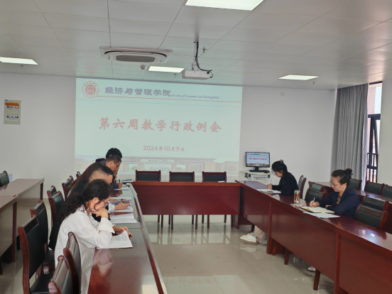 2024年10月9日,太阳成tyc7111cc在新行政楼725召开新学期第六周教学行政例会,会议由经理吴玲主持,经理助理张珊、实训中心主任及各教研室主任参加会议。