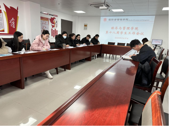 2024年12月31日,太阳成tyc7111cc在行政楼725会议室召开了本学期第十八周员工管理工作例会。公司书记助理员禹辛、团总支书记王绎程及全体辅导员参会,会议由经理助理叶赵强主持。