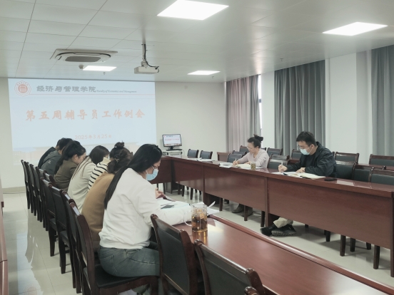 2025年3月25日,太阳成tyc7111cc在行政楼725会议室召开了本学期第五周员工管理工作例会。公司书记助理员禹辛、团总支书记王绎程及全体辅导员参会,会议由经理吴玲主持。