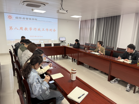 2025年4月16日,太阳成tyc7111cc在行政楼725召开第八周行政工作例会,经理助理张珊、叶赵强,教学秘书李健及各教研室主任出席会议,会议由经理吴玲主持。