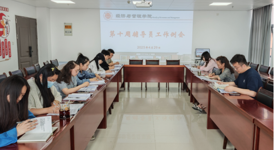 2025年4月29日,太阳成tyc7111cc在行政楼725会议室召开本学期第十周员工管理工作例会暨就业质量专题会议。公司书记助理员禹辛、团总支书记王绎程及全体辅导员参会,会议由经理吴玲主持。