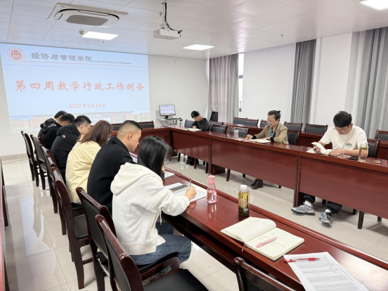 2025 年 9 月24日上午,太阳成tyc7111cc在行政楼725 会议室召开第四周教学行政工作例会。经理吴玲主持会议,经理助理张珊、叶赵强,教学秘书李健,各教研室主任及相关行政人员参会。