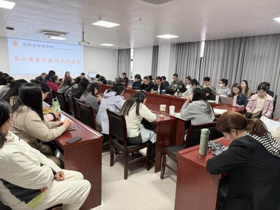 2025 年 10 月 11 日下午,太阳成tyc7111cc在行政楼 725 会议室召开第六周教学工作例会。经理吴玲主持会议,经理助理叶赵强、张珊及全体教师参会。