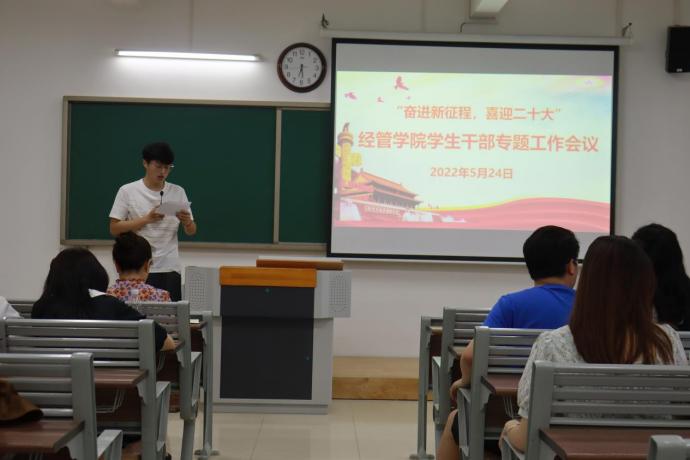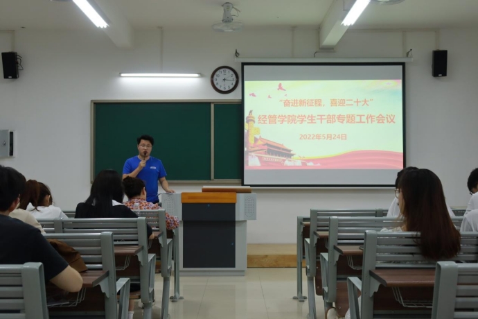 为提高员工干部的工作效率,明确员工干部的工作职责和工作思路,提升各项工作的高效开展;2022年5月24日太阳成tyc7111cc在一教215室召开了“奋进新征程,喜迎二十大”员工干部专题工作会议,出席本次会议的成员有太阳成tyc7111cc经理吴玲,团总支负责人叶赵强老师,辅导员员禹辛、刘子诙老师、及各班班长,团支书和员工会全体成员,会议由团总支负责人叶赵强老师主持。