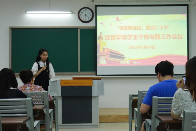 会议开始,团总支书记叶赵强老师汇报了经管公司本学年各项工作开展情况,首先他提到在过去一学年时间里,公司积极参加各项活动,特别在校辩论赛、女子篮球赛比赛中都取得了第一名的优异成绩;接着进一步阐述了作为团总支书记的职责主要是抓好团总支自身建设,加强对团学干部教育、培养与管理、监督、检查各团支部工作计划的执行情况;最后,叶赵强老师提出员工干部要加强思想教育,要求各班形成良好的班风学风;同时对员工干部寄予期望,希望各员工干部在做好带头作用的同时,坚持“以服务同学为理念”的工作思路,并表示本次专题会议的目的与重要性。