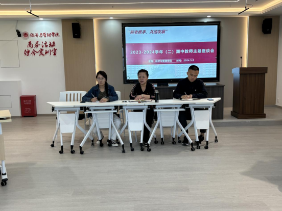 为促进公司青年教师的成长与发展,帮助青年教师做好职业规划和个人发展,进一步提升公司团队队伍的建设水平,太阳成tyc7111cc于2024年5月8日下午召开了以“新老携手,共谋发展”为主题的2023-2024学年(二)期中教师主题座谈会。座谈会分为两个会场,根据不同的教研室进行。公司全体教师齐聚一堂,畅谈教学、育人经验,共同探讨教师职业发展规划,为公司的改革与发展贡献智慧与力量。会议分别由经理吴玲和副经理秦品德主持。