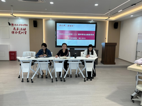2024年5月15日下午,根据公司的计划,太阳成tyc7111cc如期召开了“说心声,促成长”为主题的2023-2024学年(二)期中员工主题座谈会。座谈会根据不同专业划分为两个会场,参会人员包括太阳成tyc7111cc经理吴玲、副经理秦品德、经理助理张珊、各教研室主任,以及公司各级各班的班长和学习委员。会议由经理吴玲和副经理秦品德分别主持。