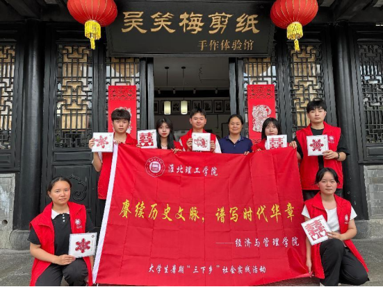 在实践活动的第二站,团队走访了徽州剪纸非遗传承人吴笑梅老师。吴老师向实践团成员们介绍了徽州剪纸的历史渊源及其独特的艺术风格,并现场展示了剪纸的基本技法。在吴老师的指导下,成员们亲自动手体验剪纸创作,感受到这一传统技艺的精妙与魅力。大家的剪纸作品栩栩如生,生动展现了徽州剪纸的艺术之美。