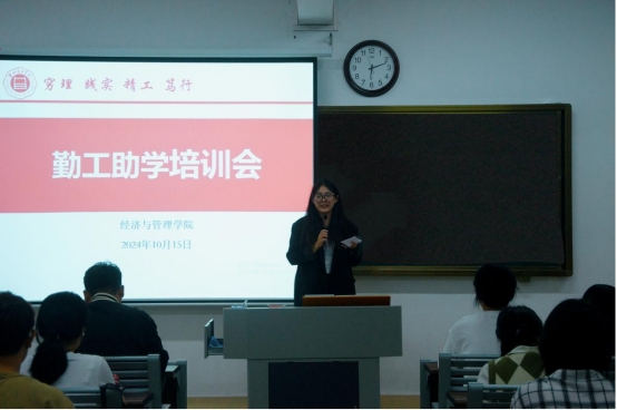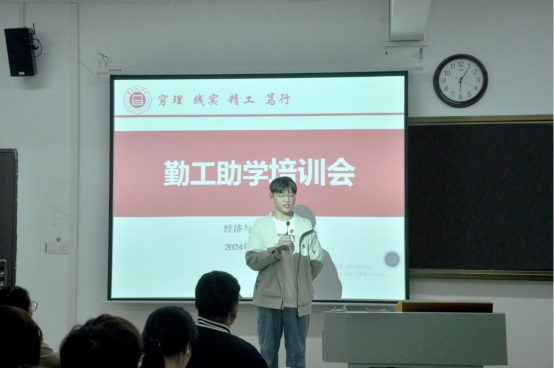 最后,叶赵强对公司的勤工助学政策及各岗位的工作职责进行了全面而详尽的阐述。他进一步明确了勤工工时的核算方法及工资发放的具体流程和细则,确保信息的透明度与准确性。在介绍过程中,叶赵强还针对以往勤工助学工作中存在的问题进行了说明,并针对性地提出了具体的改进措施,旨在提升勤工助学工作的效率与质量。他强调,希望所有参与勤工助学的同学能够秉持认真负责的态度,全力以赴地完成工作任务。
