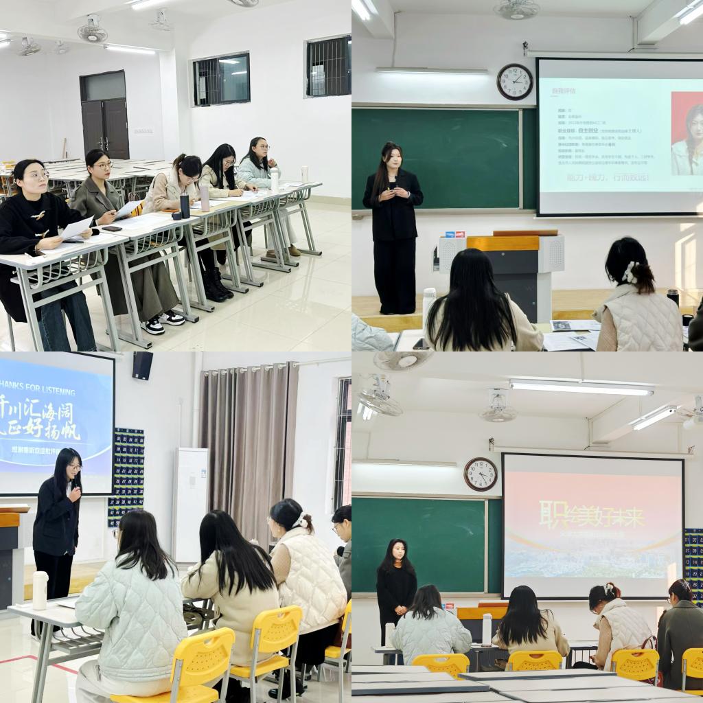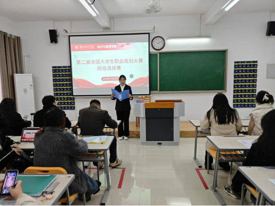 比赛过程中,选手们结合专业特点和自身优势设计自己的职业目标和多角度开展自我评估,从职业认知、职业定位评估与调整以及目标契合度等多个方面阐述了对职业的发展规划,他们思路清晰明确,充分展现老员工朝气蓬勃的精神风貌和职场新人的职业形象。评委老师根据每位选手的专业特点和现实表现,进行详细点评,按照评审标准进行评分。经过激烈角逐,武珍尧、范红玲、韩亚群等10名同学在院级初赛中脱颖而出,获得参加校级比赛的机会。