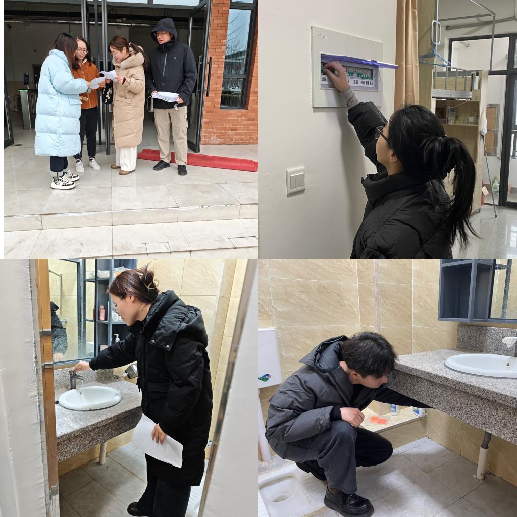 会议结束后,书记助理及团总支书记带领全体辅导员深入公司600余间员工宿舍,开展“地毯式”安全检查,逐一测试宿舍水电设备,检查是否有损坏的灯具、插座,排查安全隐患,对存在问题的宿舍及时上报维修,确保开学后宿舍水电供应正常。