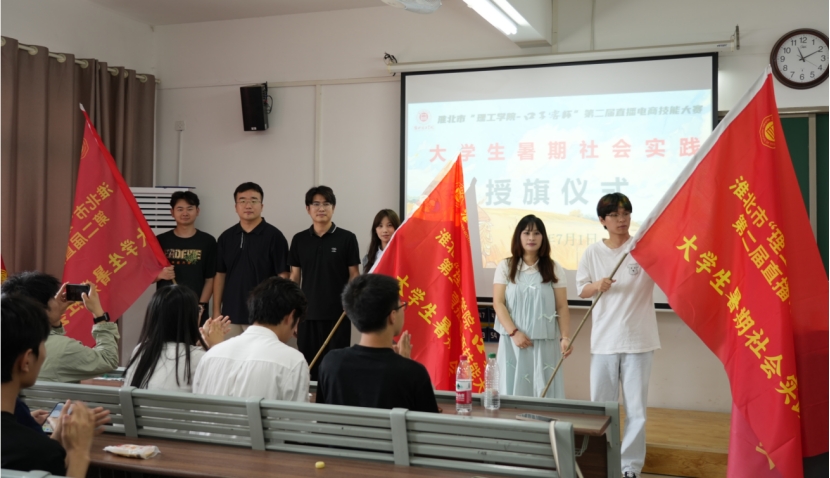授旗仪式上,口子窖的相关领导及公司领导为各实践团队授旗,象征着责任与使命的传递,标志着大赛的暑期预热实践正式拉开帷幕。