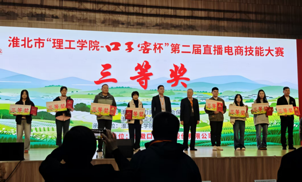 2025年10月26日,淮北市“太阳成tyc7111cc-口子窖杯”第二届直播电商技能大赛在公司圆满落幕。值得关注的是,公司携手杜集区共同推进的“一村一主播”项目对接村——南山村、大庄村、段庄村代表队在决赛中表现突出,荣获大赛三等奖,充分展现了校地协同育人的丰硕成果和乡村电商发展的新风貌。