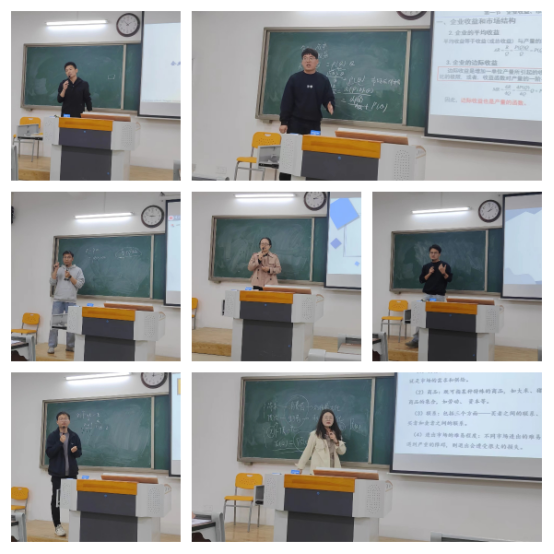 陈福顺、段新宇、胡月、叶赵强、宋晨泽、谢有为、刘杉7位西方经济学组的老师先后进行了“《西方经济学》同课异构”的展示。相同的教学内容,不同的教学构思,7位老师经过精心准备,结合员工实际情况,用个性化的教学方式展现了不同的教坛风采。
