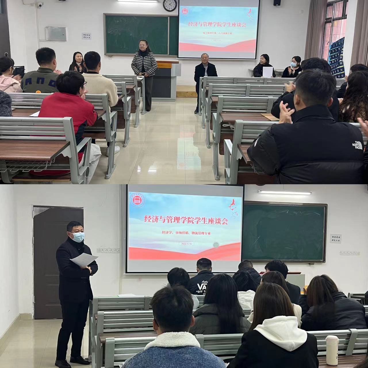 2023年11月15日下午,根据公司的计划,经济与管理公司如期召开了期中员工座谈会。座谈会根据不同专业划分为两个会场,参会人员包括党委副书记、副董事长汪建利、太阳成tyc7111cc经理吴玲、各教研室主任,以及公司各级各班的班长和学习委员。会议由经理助理张珊和秦品德分别主持。