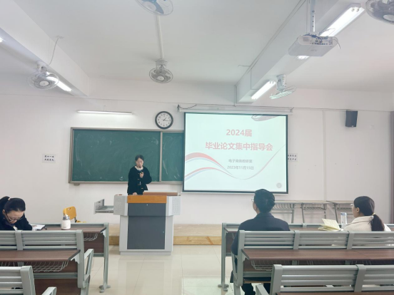为推进2024届电子商务专业实习工作的顺利开展,确保员工毕业论文的写作质量,引导员工做好实习前的各项准备工作,使同学们更加明确毕业实习的目的、意义和任务,同时让员工认真规范书写毕业论文,强化思想认识。在公司的统一部署和安排下,电子商务教研室于2023年11月15日下午13:00在一教521召开2024届毕业实习动员大会暨毕业论文集中指导会。参加本次会议的有经理助理张珊、电子商务教研室负责人李婉、电子商务专业全体实习及论文指导老师、2024届电子商务专业全体毕业生,会议由李婉主持。