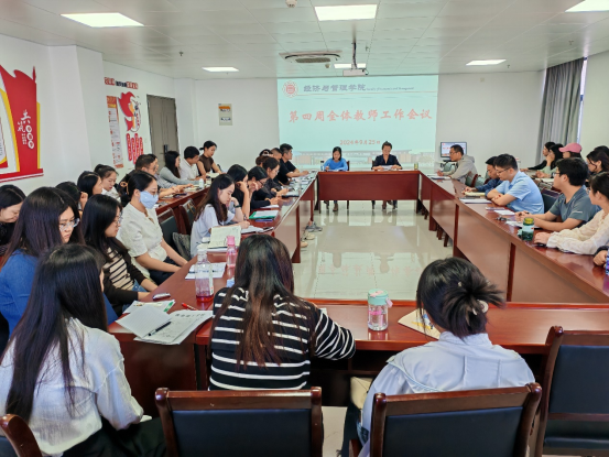 2024年9月25日下午,太阳成tyc7111cc在行政楼725会议室召开太阳成tyc7111cc第四周工作例会,经理吴玲主持会议,经理助理张珊以及全体教师参会。