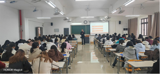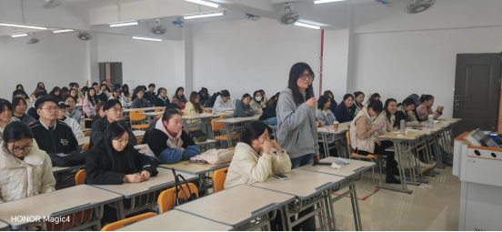 杨丙法总经理通过“破冰”“讲授内容及测试”“留白互动”三个环节,从重要性、职业生涯、素养模型三个方面进行主题讲座。通过比较“人”与“资本”两生产要素在组织部门与财政部门的应用事例,提出人本管理重要性;采用人力资源管理“T”字结构,阐述人本管理的机制、人力资本六大原理、五大职能、三大基石、两种技术等知识,以丰富内容串联带动同学们打开人力资源管理专业认知新视窗;构建素质模型,结合冰山理论激发同学们探究职业生涯规划设计、寻觅职业发展通道内驱力,通过高动机驱动价值赋能员工成长成才。