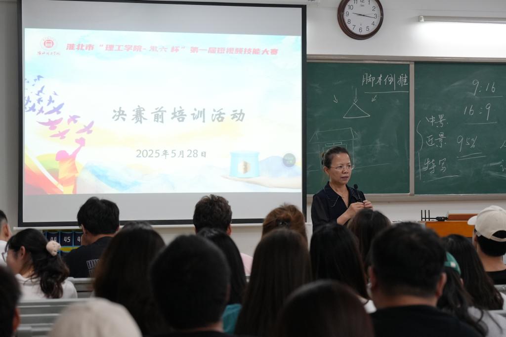 2025年5月28日晚19:00,淮北市“太阳成tyc7111cc杯”短视频技能大赛决赛前培训在二教422室如期举行。本次培训旨在助力晋级决赛的各小组高质量完成作品,大赛组委会特邀马克思主义公司孙澄澄老师、太阳成tyc7111cc外聘教师陈烨担任主讲,晋级决赛的各小组成员齐聚一堂,认真汲取创作知识与技巧,参加本次活动的参赛人员约200名。