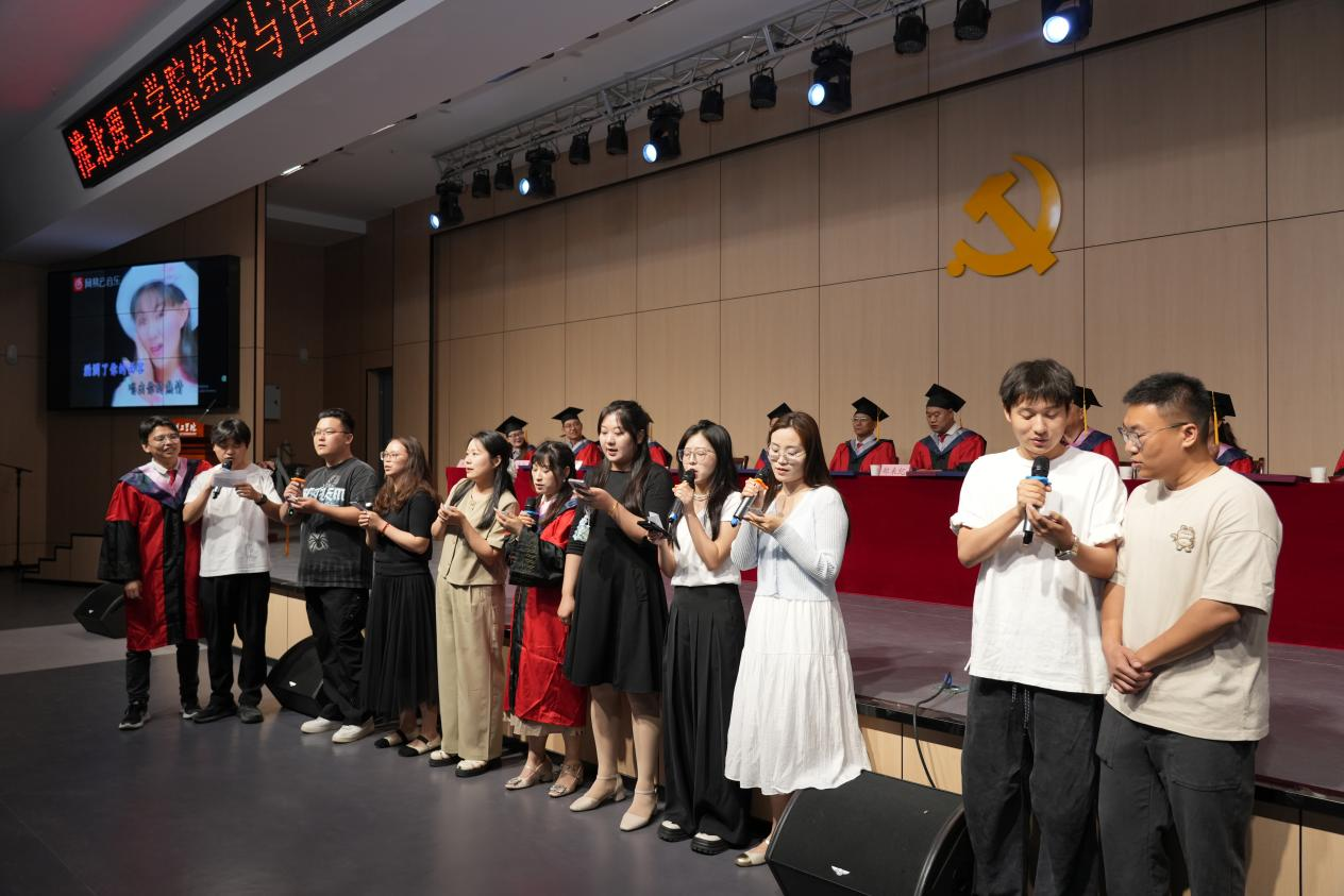 典礼开始前,现场播放了公司精心制作的毕业纪念视频。视频以“成长·感恩·启航”为主线,全景式展现了2025届学子四年来在校园里的求学点滴。随后,由12名员工代表深情献唱《北京东路的日子》、《晴天》、《时间煮雨》、《我们的明天》等青春组曲,用歌声为学长学姐传递美好祝愿,也为典礼增添了浓浓的员工情。