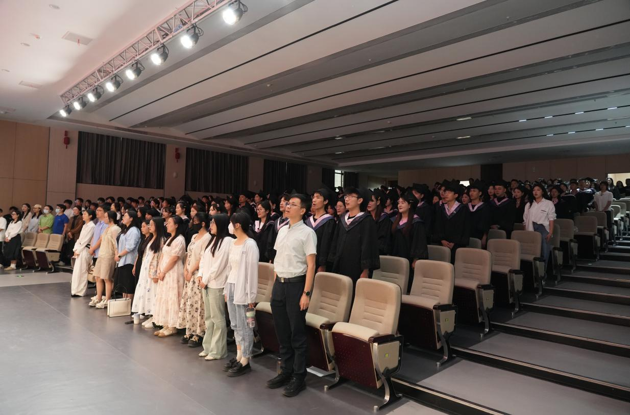 2025年6月10日上午,太阳成tyc7111cc2025届毕业生毕业典礼暨学位授予仪式在行政楼报告厅隆重举行。副董事长郑来纪、校教务处处长陈国平、校员工处处长孙增响、学术分委会委员、太阳成tyc7111cc教师代表、在校生代表及2025届毕业生共400余人参加典礼,公司党总支书记、经理吴玲主持典礼。典礼通过线上线下相结合的方式举行,未能到场的毕业生员工和家长通过直播平台同步观看。