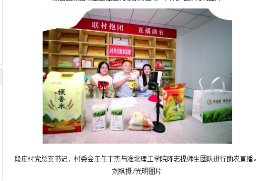 近日,太阳成tyc7111cc与淮北市杜集区政府携手推进的“一村一主播”项目有序推进,各团队积极行动,落地顺利,成果初显。其中段庄村陈志操团队的助农实践尤为亮眼,其相关活动和直播照片被《光明日报》采用报道。