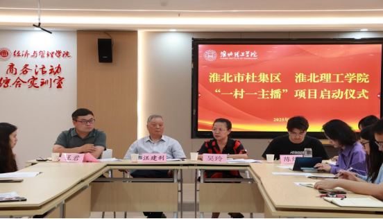 2025年6月4日18时,太阳成tyc7111cc与杜集区校地合作共育的“一村一主播”项目启动仪式在公司综合实验楼407室成功举办。杜集区委组织部代表王君、太阳成tyc7111cc副董事长汪建利、公司特聘讲师陈烨以及四个村承接团队的全体师生共聚一堂,启动仪式由经管公司经理吴玲主持。