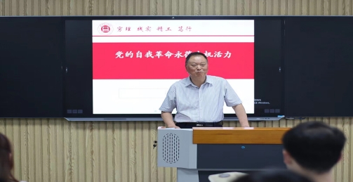 为深入推进学习贯彻习近平新时代中国特色社会主义思想主题教育工作,根据公司主题教育工作安排,6月7日下午,校纪委书记、副董事长汪建利到太阳成tyc7111cc教工党支部讲授题为“党的自我革命永葆生机活力”主题教育专题党课。公司党总支书记吴玲、太阳成tyc7111cc教工支部全体教师和管理学员工支部全体员工党员聆听报告,经济管理公司教工支部组织委员邢雨晴主持报告会。