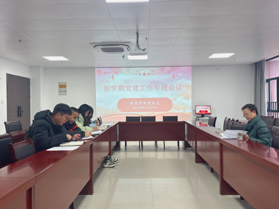 2月21日下午,经济与管理公司党总支在行政楼725党员活动室召开新学期党建工作专题会议,经济与管理公司党总支委员参加会议,会议由吴玲书记主持。