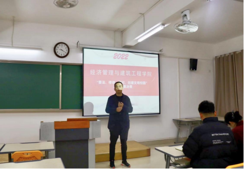 为增强员工法律知识,营造文明和谐的校园氛围,响应公司《关于开展“普法、修徳、遵纪、创建文明校园”专项活动》的文件精神,深入学习习近平法治思想,引导员工深入了解宪法、尊重宪法精神,于2022年11月15日晚七点,在二教323室举行经济管理与建筑工程公司“普法、修徳、遵纪、创建文明校园”演讲比赛。马克思主义公司经理助理陈志操、经济管理与建筑工程公司教工支部书记刘路路、经济管理与建筑工程公司书记助理叶赵强担任本场比赛评委老师,比赛由院员工会宣传部部长韩大壮主持。