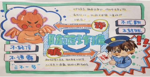 为进一步做好公司防范电信诈骗工作,构建和谐平安校园,切实做好电信网络诈骗的防范教育,提高人人民群众识骗防骗的意识和能力,预防和减少金融诈骗案件的发生。4月25日至5月5日公司2021级人力资源管理普本班承办开展“反诈进校园”主题活动,活动包括到主题班会、反诈骗知识测试、反诈骗手绘报。全院同学积极报名参加,做到29个班级全覆盖。