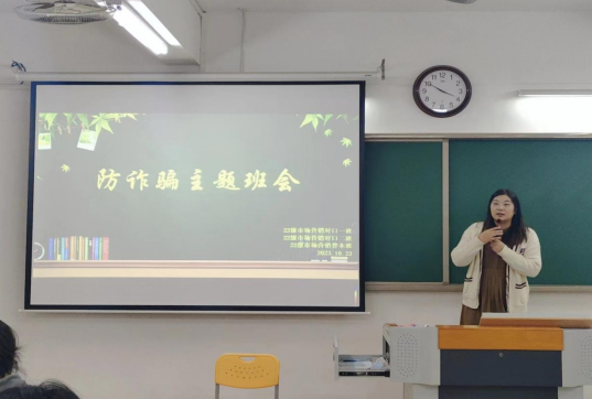 会上,由各班辅导员以及班委带领同学们了解何为电信诈骗,关于电信诈骗案例、特点和常见套路以及应对措施。首先,辅导员向同学们介绍了电信诈骗是指通过电话、网络和短信方式,编造虚假信息,诱使受害人打款或转账的犯罪行为,再通过PPT上的内容,用真实案例告诉同学们遭遇电信诈骗会产生的重大损失和影响,并警示员工被诈骗随时在身边发生,要求大家一定要警惕。