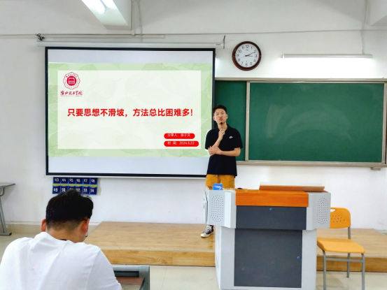 孟露分享了自己跨专业备考的经验,就备考过程中面临的一些问题进行了详细的讲解,给大家分享了自己的学习资料以及学习APP。她强调提高做题量的重要性,告诫员工一定要多做习题,尤其是后期要强化真题的练习。汪院生则分享了自己选择体育运动与人体科学专业的原因,她专业课成绩优异,着重为大家讲述了一下如何复习专业课的心得体会也对于基础知识巩固和面试技巧作出了自己的经验总结。