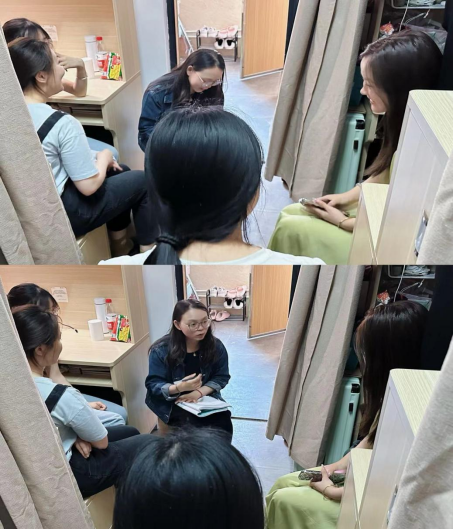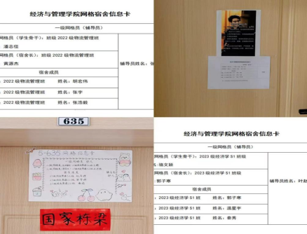 辅导员二进员工宿舍,形成具体举措解决员工问题,提供心理支持和疏导。各辅导员按就近、便捷、高效的原则完成了公司400余间员工宿舍的网格划分,除毕业班外的1600余名同学积极参与其中,并在每个网格单元设立二、三级网格员,张贴网格宿舍信息卡,形成“自我管理、自我服务、自我监督”的良好氛围。