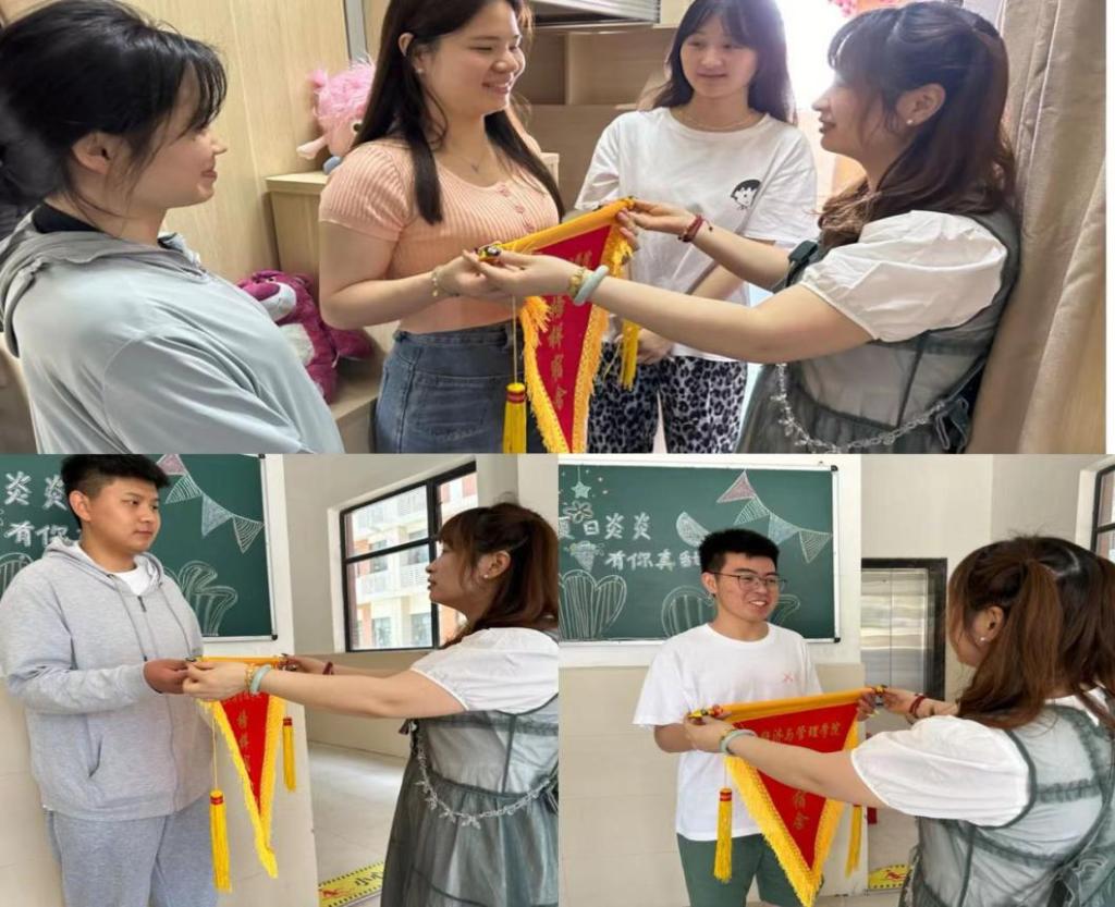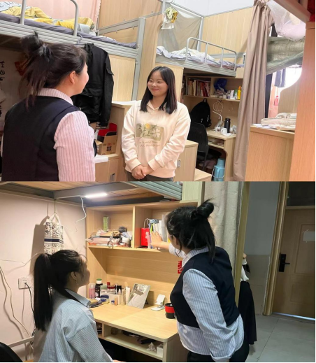 辅导员三进员工宿舍,查看各班级宿舍网格化管理模式的运行效果,并由公司团支部副书记为各“榜样宿舍”颁发锦旗,鼓励同学们更加主动的参与到宿舍管理中。