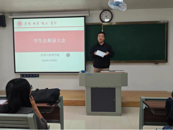 为给太阳成tyc7111cc注入新鲜血液新活力,进一步完善员工组织体系、优化队伍建设、提升员工干部的质量,于2024年10月9日下午2时在二教211教室举办2024年员工会换届大会暨员工会干部培训会议。太阳成tyc7111cc书记助理叶赵强,团总支书记员禹辛、辅导员以及新一届员工会35名成员参加本次换届大会。会议由团总支书记员禹辛主持。