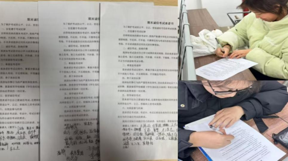 在班会中,对员工手册条款结合案例进行解读,深入浅出地阐释了诚信考试的重要性。此外,强调了同学们应认真准备考试。明确指出作弊行为严重违反学术规范,对员工的学业发展构成重大危害。并对作弊行为对个人及班级产生的负面影响进行了详细说明。班会期间,组织同学们签署《期末诚信考试承诺书》,鼓励同学们以诚信为本,凭借自己的实力取得优异成绩。