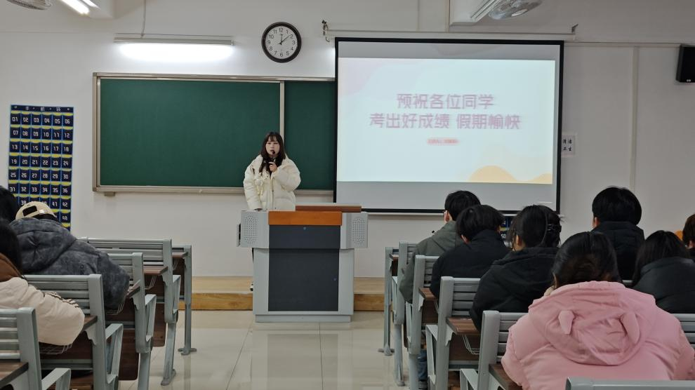 班会最后,辅导员向同学们表达了殷切期望,预祝同学们在期末考试中取得优异成绩,同时祝愿大家度过一个安全、愉快的假期!