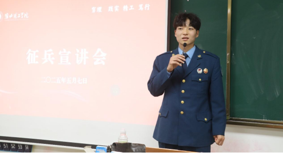 在宣讲会的开端,祁俊杰发表了极具感染力的动员讲话。他倾囊相授自己的军旅生涯经历,用一幕幕鲜活的故事串联起在部队训练、学习与生活的点滴瞬间。他坦诚分享了自己初入军营的青涩懵懂,以及在磨砺中逐步蜕变成长为合格军人的心路历程。祁俊杰强调,参军入伍是个人成长道路上的珍贵机遇,更是当代青年肩负的时代使命与责任担当,这番话语深深触动了在场学子的心弦,为他们种下了投身军旅的向往之情。