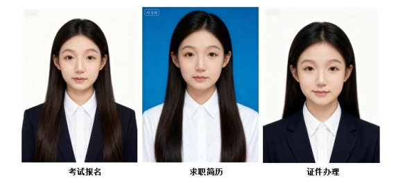 内容设计聚焦员工需求,提供全流程个性化服务:员工可自主选择AI工具,自定义证件照尺寸、背景色,生成后能即时下载,解决传统证件照耗时、耗力、成本高的问题;还特别推出“分场景定制”功能,内置“求职简历”“考试报名”“证件办理”三大模板,可自动适配不同场景的尺寸与背景要求,无需反复调整即可获取合规证件照。