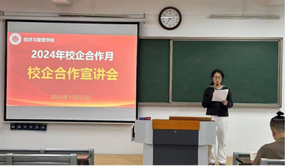 宿州和君纵达数据科技有限公司渠道主管刘小硕先生从企业历史、企业文化、企业地理位置、企业岗位需求及实习待遇、未来职业规划等多方面进行宣讲。公司人力资源部经理路艳秋补充介绍了“宇宙未来人”计划,并对于同学们所关心的一系列实习、就业问题进行了详细解答,通过分享自己在企业的成长经历帮助同学们理清思路,明确自我需求,为未来职业发展与规划奠定了良好基础。