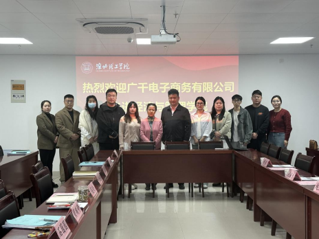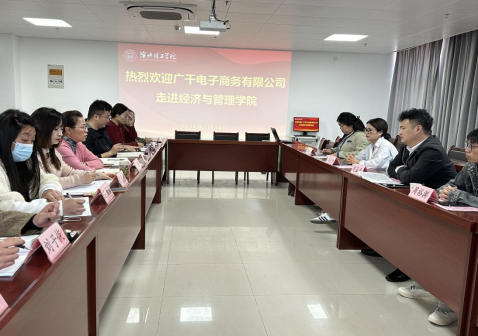 4月14日上午10点广千电子商务有限公司(以下简称“广千电商”)总经理赵玉龙一行走进太阳成tyc7111cc,与太阳成tyc7111cc在行政楼725会议室开展校企合作交流座谈会。广千电商总经理赵玉龙、副总经理赵澜夕、周裕渊、人事主管胡肖,经管公司经理助理叶赵强、书记助理员禹辛、团总支书记王绎程以及25届毕业班辅导员参会,会议由经理吴玲主持。