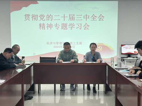 为深入学习贯彻党的二十届三中全会精神,动员全体教师凝心聚力、奋发进取,切实将全会精神转化为推动工作的实际行动,经济与管理公司党总支开展学习贯彻党的二十届三中全会精神系列学习活动。